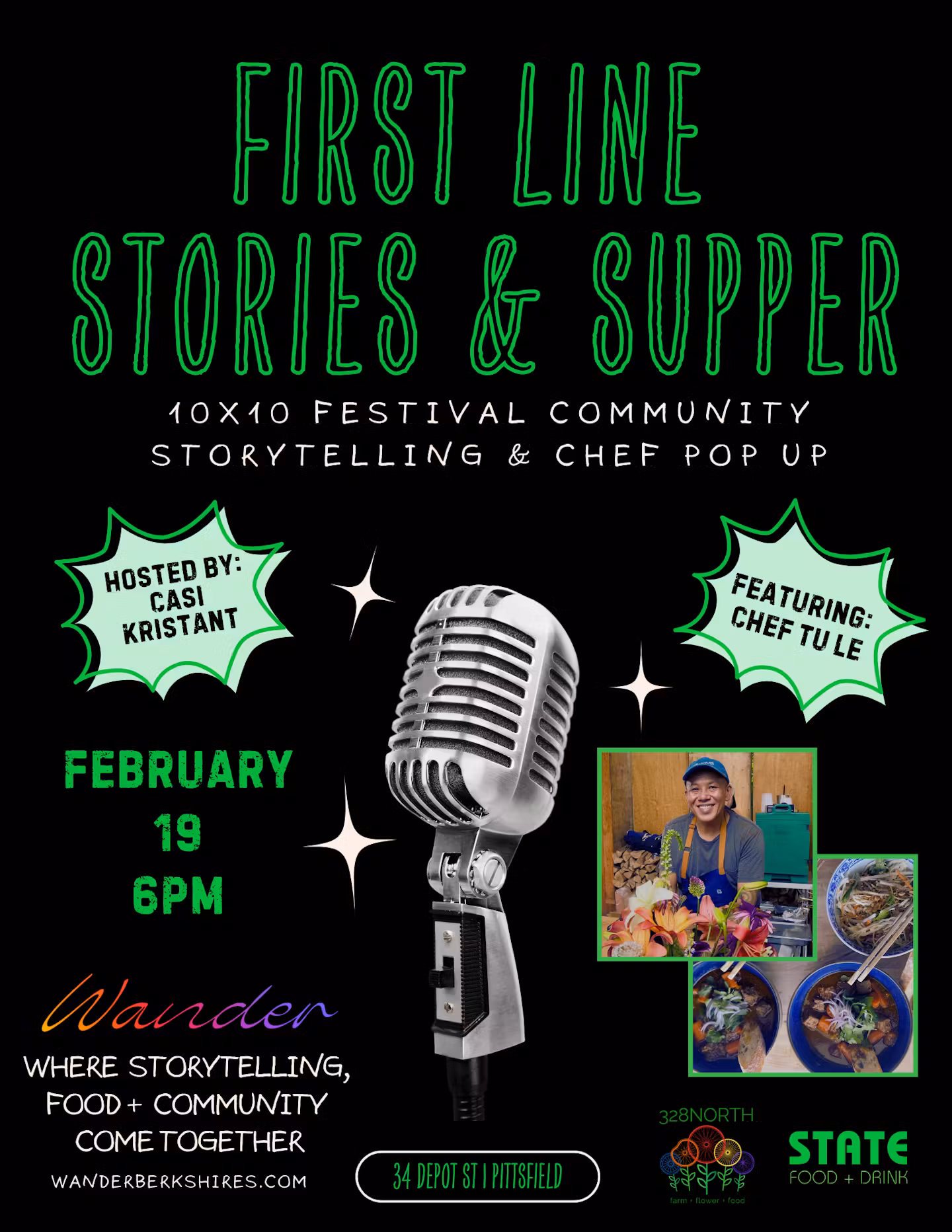 We are thrilled to announce an exciting update: Chef Tu Le’s highly anticipated pop-up dinner has been rescheduled and will now be combined with First Line : Stories + Supper 10×10 Community Storytelling + Chef Pop Up, creating an evening that celebrates food, storytelling, and community in one unforgettable experience.