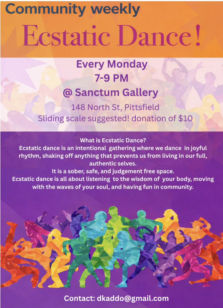 October 12, 2026Ecstatic dance is an intentional gathering where we dance in joyful rhythm, shaking off anything that prevents us from living in our full, authentic selves. It is a sober, safe, and judgement free space.