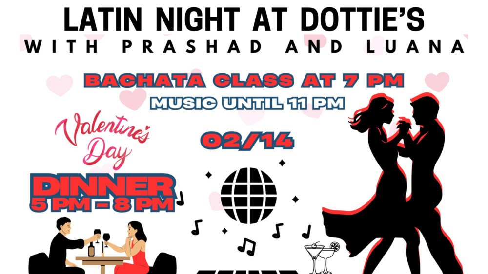 February 14, 2025Join us on Valentine’s Day for an exceptional and unique evening. We don’t want to brag but it’s kind of the best date night ever. Luana and Prashad are amazing teachers and so inspiring., -Dottie’s provides an inviting and comfortable environment to let loose and find your dancing style. Grab your special One and bring them to a light dinner and then hit the dance floor.