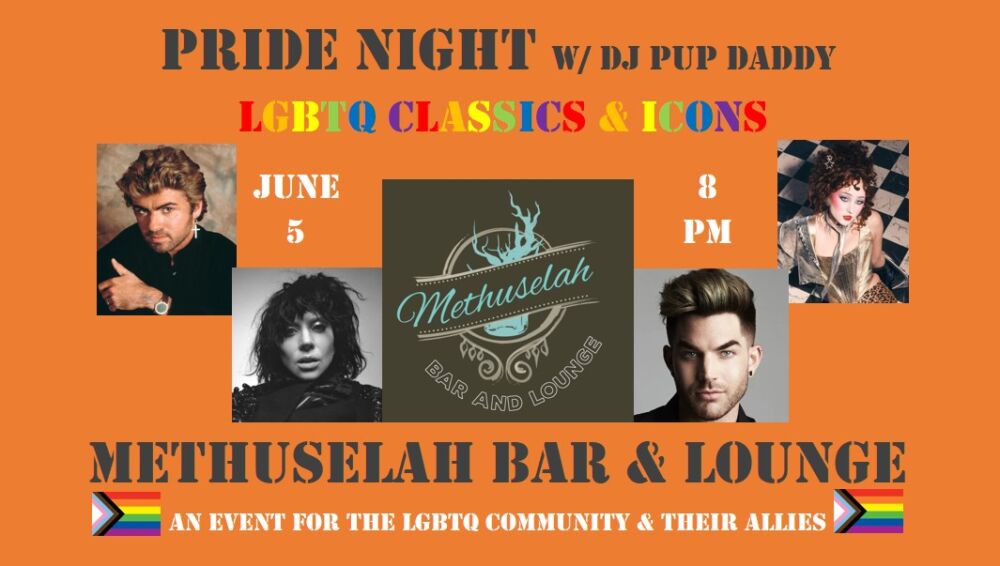 June 05, 2025Pride Night w/ DJ Pup Daddy happens every 1st and 3rd Thursdays of the month at Methuselah Bar & Lounge as a safe space for the LGBTQ+ community to socialize, meet others and dance!
